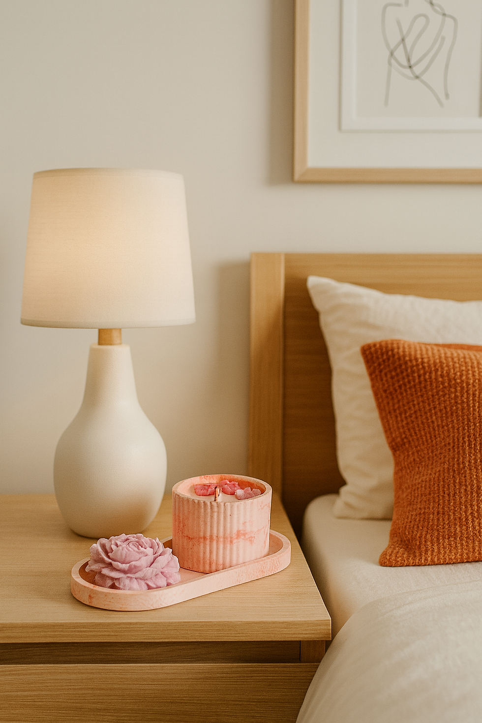 Maman et artisane, je crée des pièces pensées pour apporter chaleur, style et authenticité à votre intérieur. Chaque bougie est fabriquée à la main dans mon atelier, avec soin et passion, en utilisant des matériaux respectueux de l’environnement comme la cire de soja et la jesmonite.